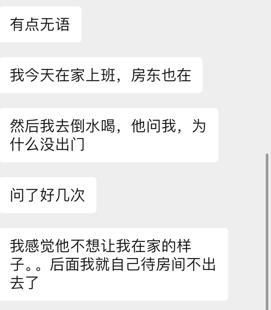 这其实不是她第一次遇到这个问题了,之前她在客厅和家人打电话,房东也会过来拿这拿那,有点故意打扰。