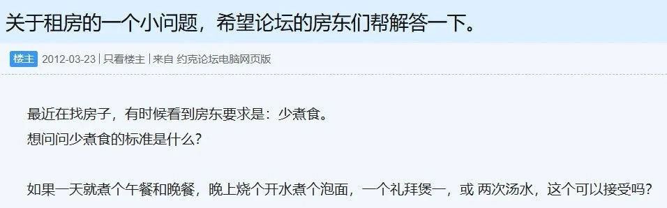但是在她打算搬去新西兰,找房子的过程中,发现很多房东标出“少煮食”的要求,表示百思不得其解,便发帖提问。