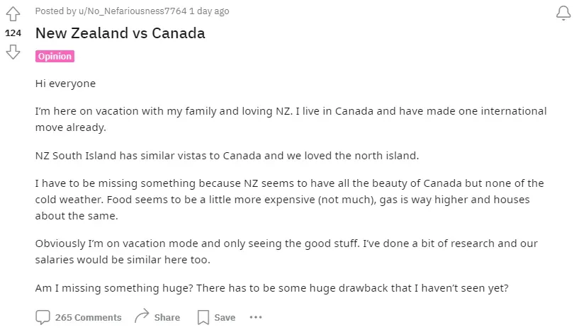这几天,一个加拿大人在新西兰小组发帖,不知道该不该润到新西兰。