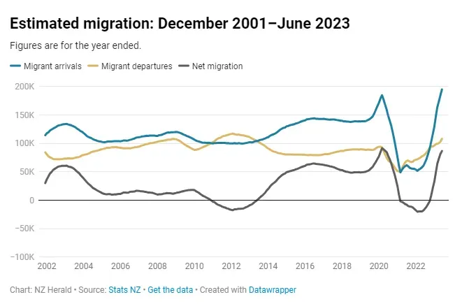 根据上半年的数据,在截至6月份的年度中,新西兰净移民人数再次上升。