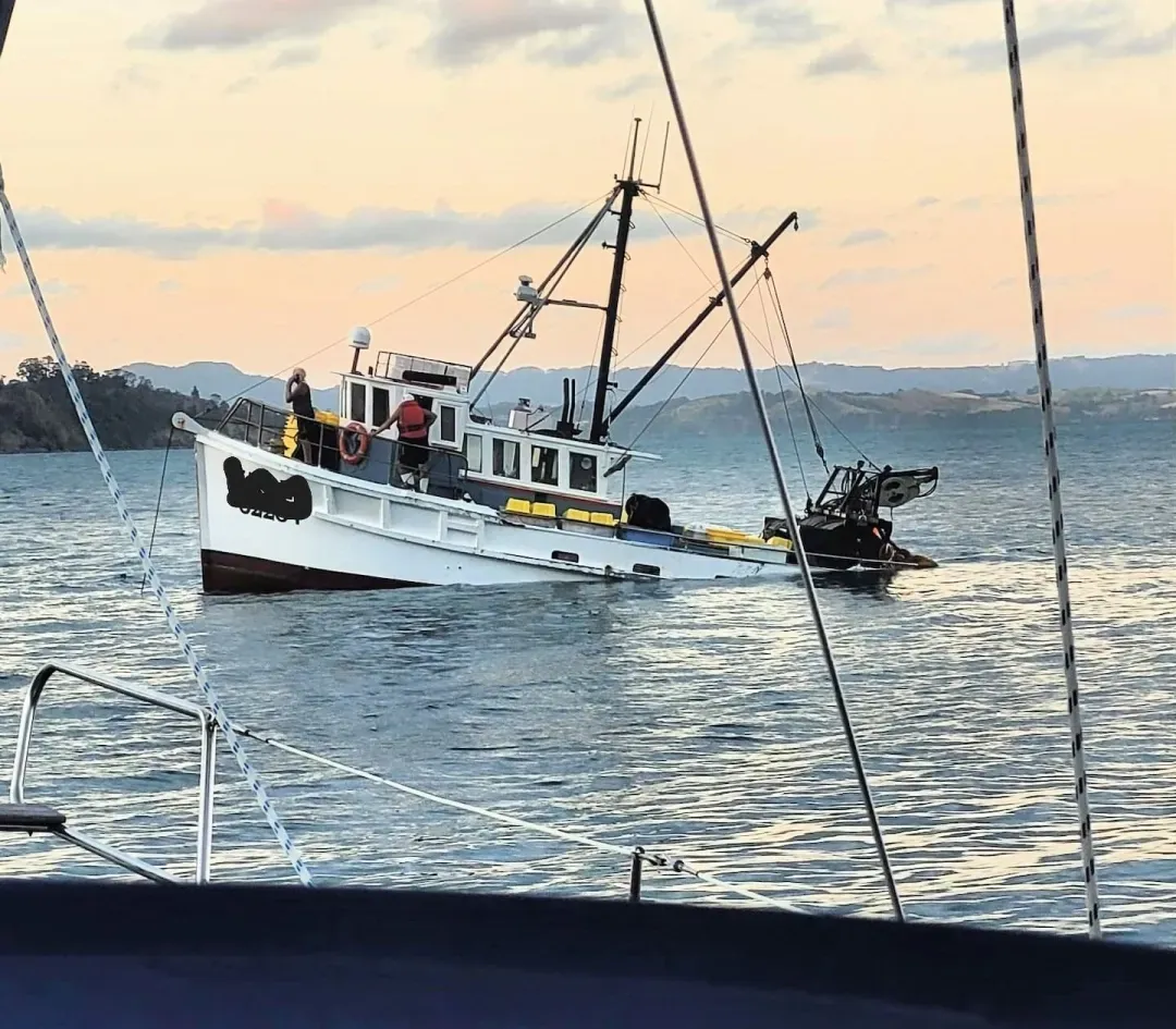 周二晚上,一艘商业渔船在奥克兰北部Kawau湾的Moturekareka岛附近沉没。