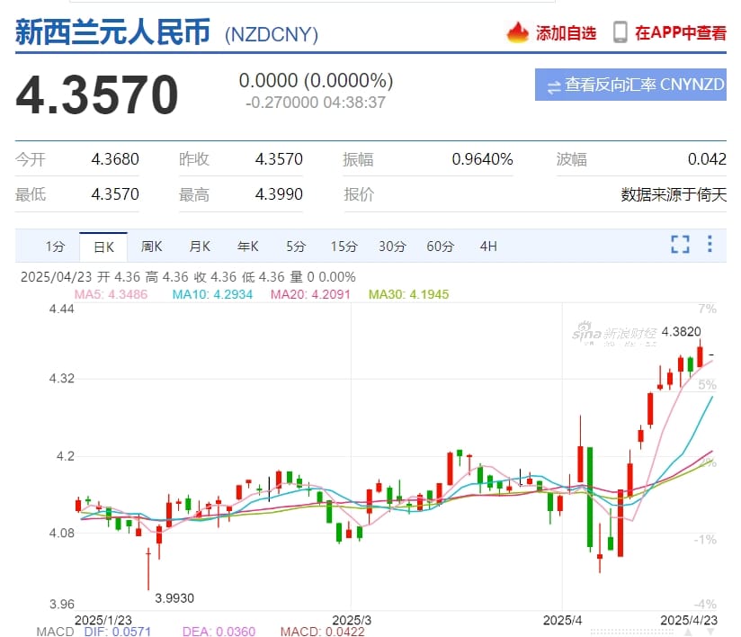 最近的金融市场像过山车,前段时间纽币猛跌,这几天又在猛涨。纽币兑人民币已经升到了4.35以上。