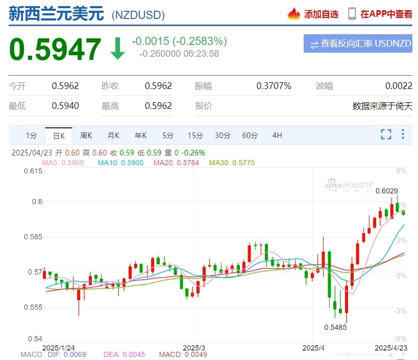 纽币兑美元前两天也上探0.60。纽币在3周内罕见飙升5美分(从0.55升至0.60美元),相当于通常一年的涨幅。
