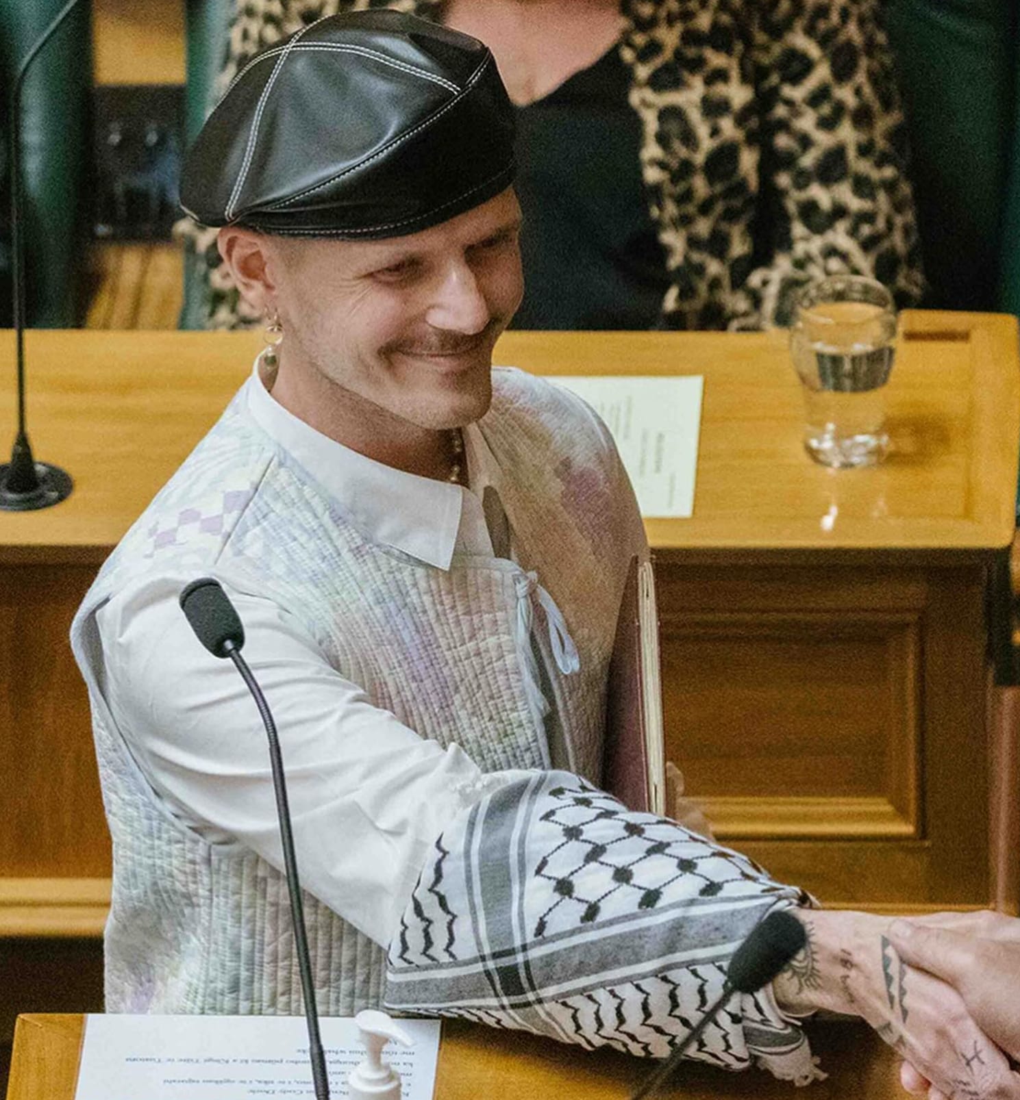 他也同时成为新西兰历史上第一个自我认知为“非二元性别”的国会议员。