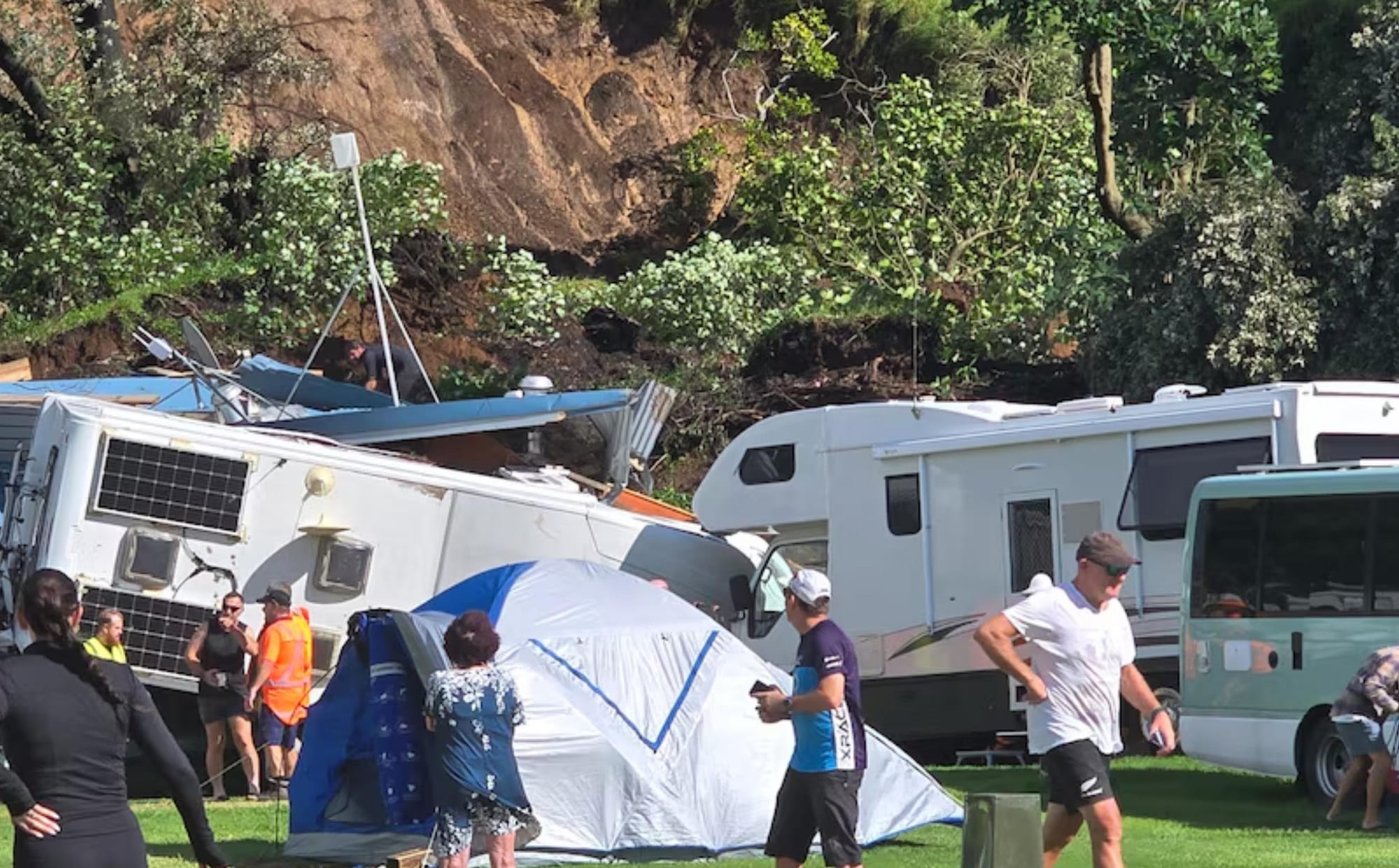 此次滑坡位于Mount Maunganui山脚的一处露营地,波及多辆露营车、帐篷以及停放的汽车。