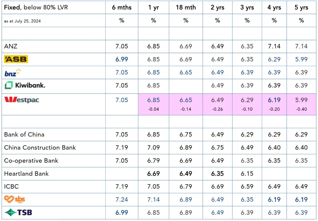 最新的调整使Westpac在一年期和18个月期拥有最低的广告特别利率,在三年期和四年期拥有最低利率。