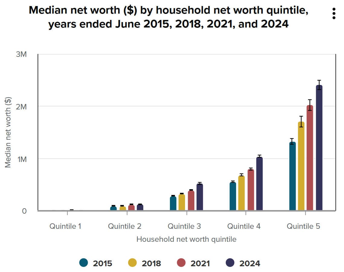 截至2024年6月的一年里,新西兰所有家庭的财富中位数为52.9万纽币,较2021年6月的39.9万纽币上涨了33%。
