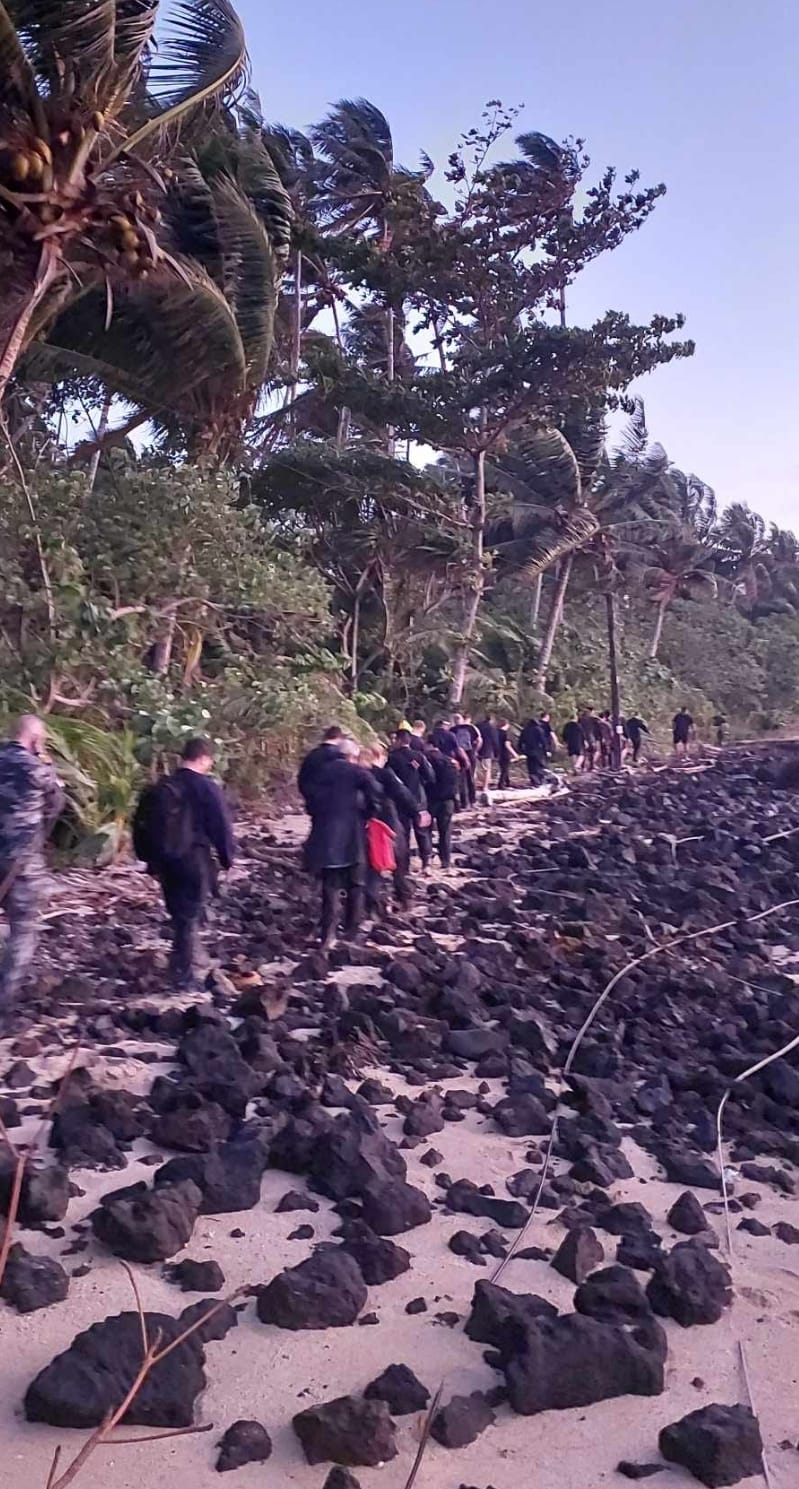 萨摩亚急救部门指挥获救新西兰官兵前往临时安置点: