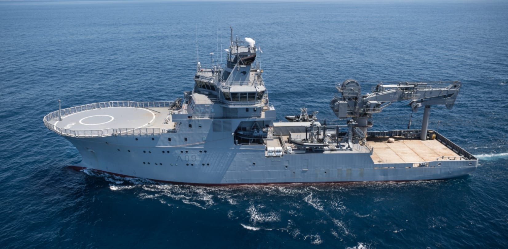 新西兰皇家海军“马纳瓦努伊号”排水量5741吨,2019年向挪威购买,主要用于潜水、打捞、海底探勘作业。
