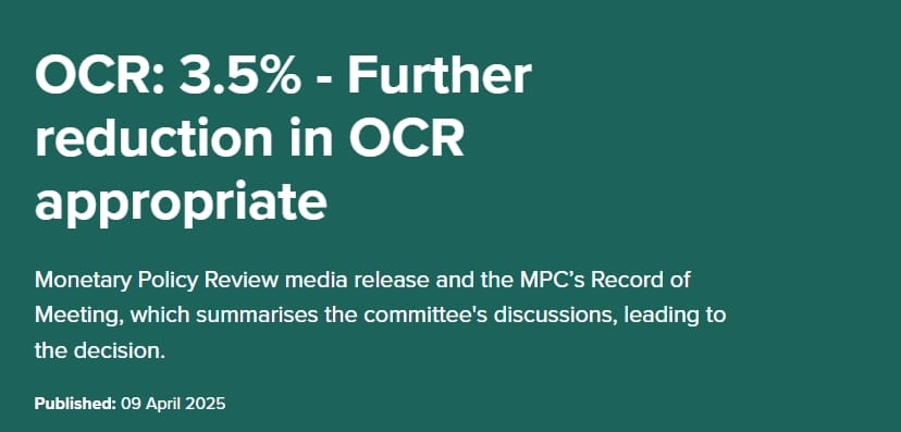 早前,新西兰独立经济学家Benje Patterson发表观点认为,关税战对新西兰的负面影响不应低估,全方位影响“从小麻烦到非常严重”都有,所以应果断一次性降息 50个基点(0.5%),以减缓冲击。