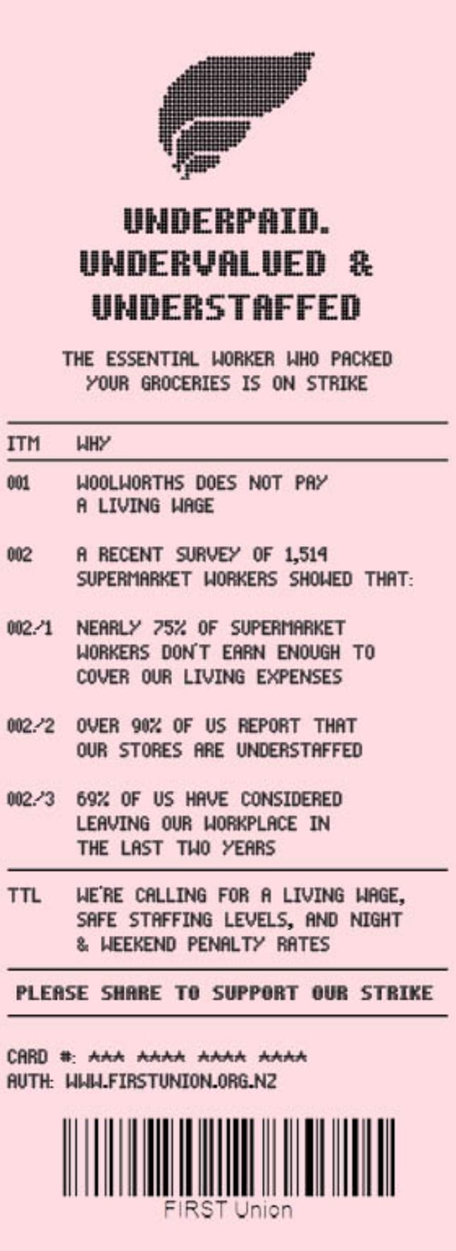 新西兰第一工会周二发布消息,Woolworths超市员工投票决定,将就低工资和不安全的人员水平采取初步罢工行动。