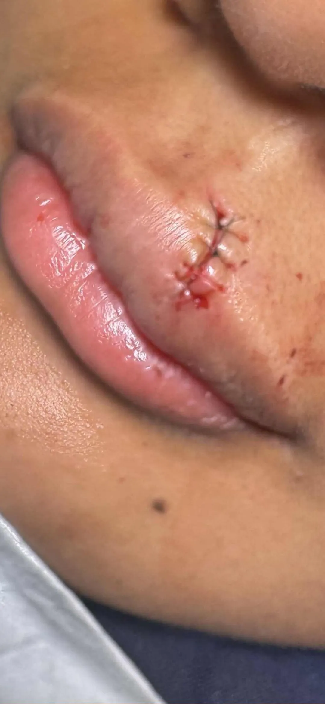 第二天,她们去了医院,Tira的嘴唇缝了4针。